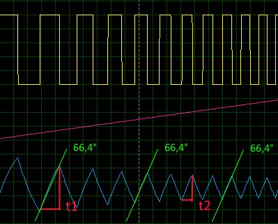 Ціль перебуває під впливом змінного електромагнітного поля. Визначаючи ВДІ цілі, ми, фактично, визначаємо тангенс кута втрат на перемагнічування. Швидкіть перемагнічування залежить не від "нахилу" (швидкості наростання сигналу), а від швидкості зміни "полюсів", тобто частоти зміни поля (t1>t2):