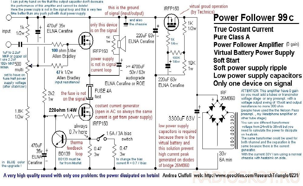 Цікавою є схема, створена в кінці 90-х італійським інженером Андреа Чуффолі, відома як Power Follower Andrea Ciuffoli або ж Power Follower '99с.