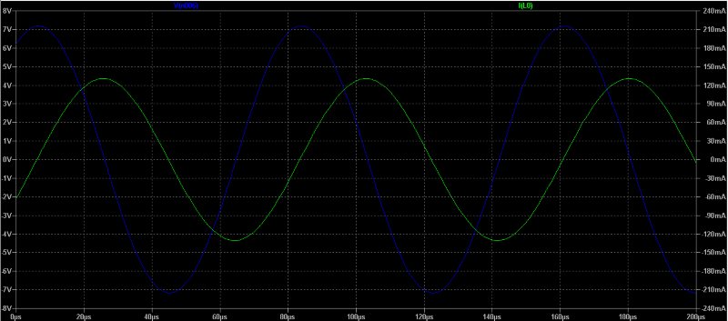 На схемі амплітуда на 11 дюймовій DD-котушцікатушці позначена 18.4 В p-p, а у моделі отримано 14.5 В p-p; сила струму - 130 мА (260 мА p-p):