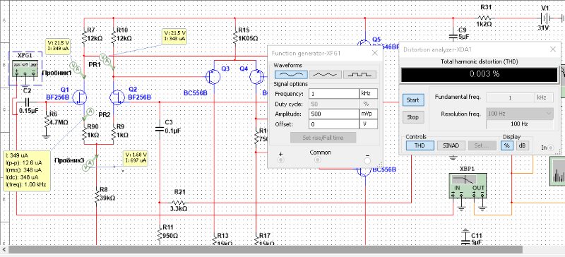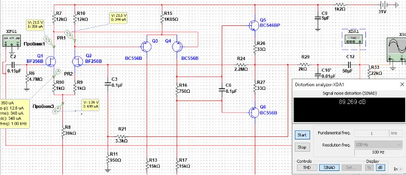 При наявності у мультиметрі можливості вимірювати коефіцієнт підсилення транзисторів - замінити VT2, VT4 на підібрані в пари BC556B.
