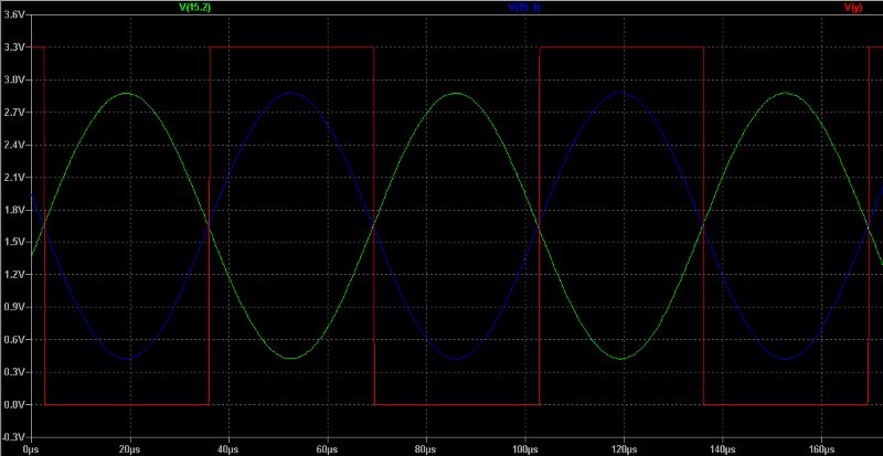 При конструюванні цифрових металодетекторів, фаза сигналу від цілі на виході підсилювача не завжди відповідає фазі струму у Тх та, відповідно, зчитуванню даних АЦП. Для прикладу, на малюнку зображено синхронізацію зчитування відгуку від цілі у каналі У в диференційному режимі на фронті та спаді меандра Тх: