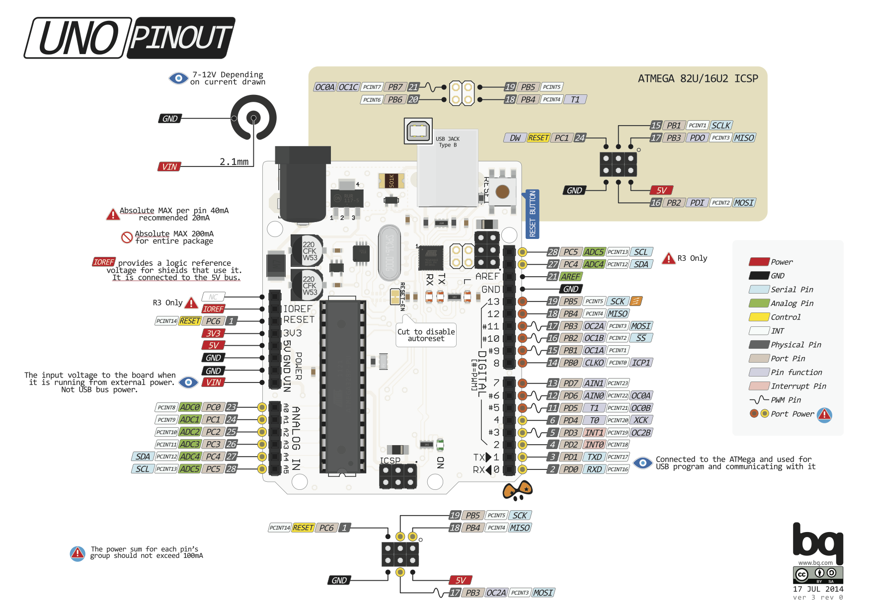Контакт A4 (SDA) і контакт A5 (SCL) використовуються для здійснення зв'язку по інтерфейсу TWI.